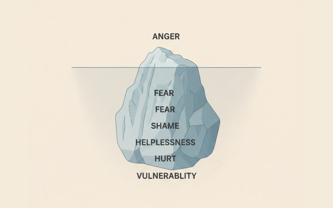 Imagine an iceberg. The part visible above water is anger—the reaction everyone sees, the emotion you feel most immediately. It's right there on the surface: the raised voice, the clenched fists, the heat in your face.